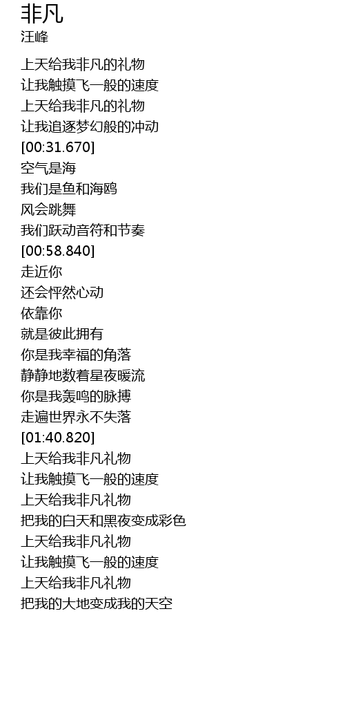 | [01:41.180] | shàng tiān gěi wǒ fēi fán lǐ wù |