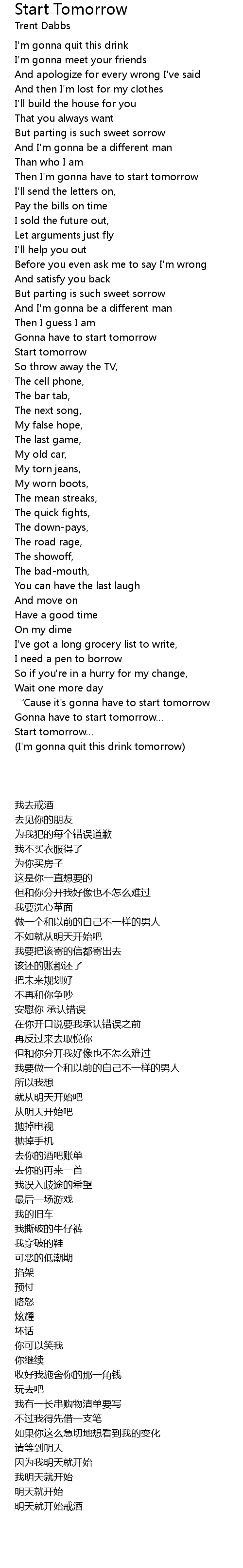 | [03:01.470] | I' m gonna quit this drink tomorrow |