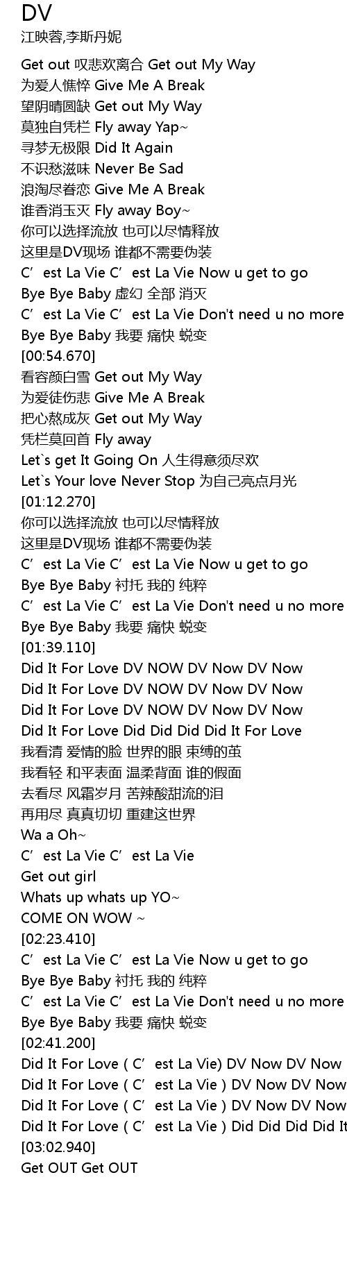 | [02:55.220] | Did It For Love C' est La Vie Did Did Did Did It For Love |