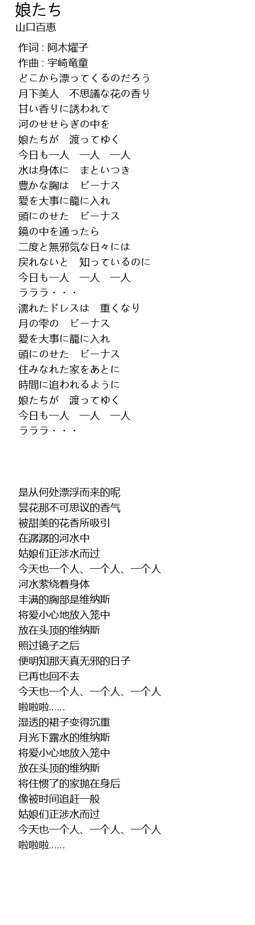 | [01:03.112] | 娘たちが 渡ってゆく |