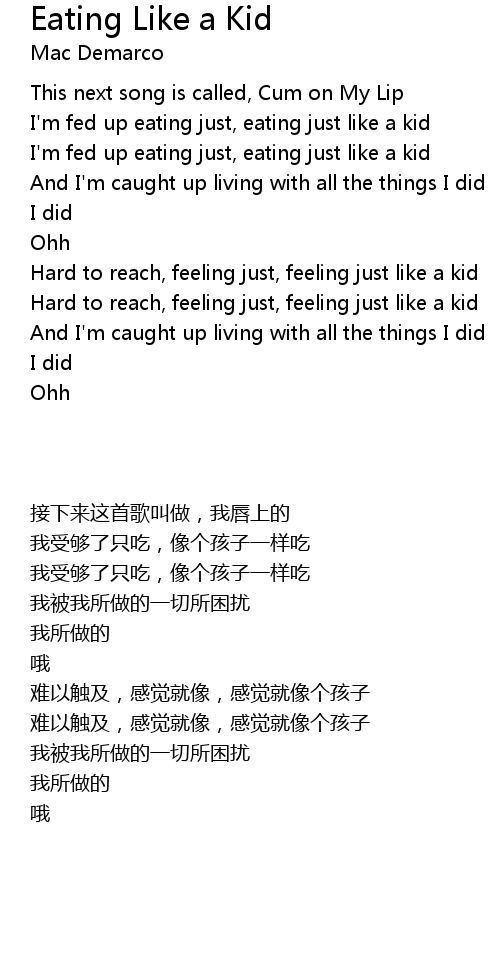 | 歌曲 | Eating Like a Kid |