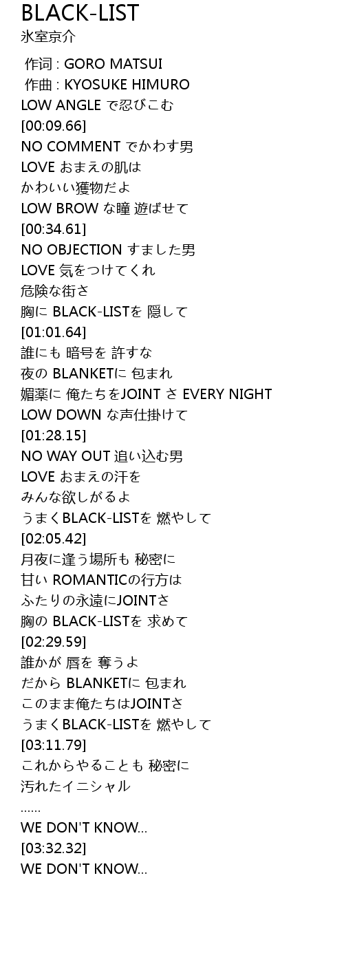 | [02:51.35] | 胸の BLACK-LISTを 求めて |