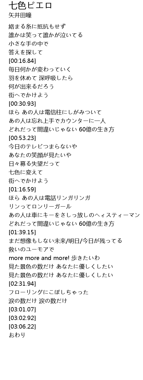 | [00:31.52] | ほら あの人は電信柱にしがみついて |