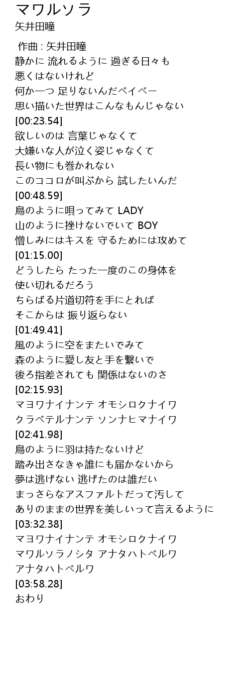 | [00:00.00] | 作曲 : 矢井田瞳 |