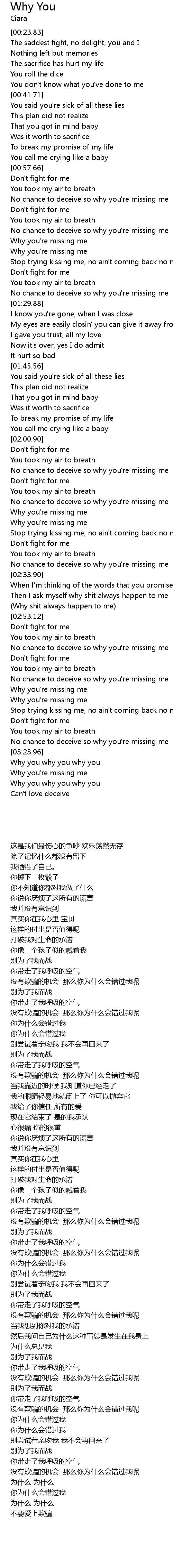 No chance to deceive so why you're missing me |