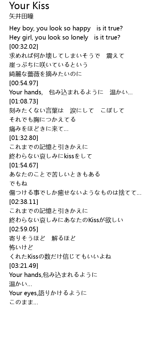 | [03:09.65] | くれたKissの数だけ信じてもいいよね |