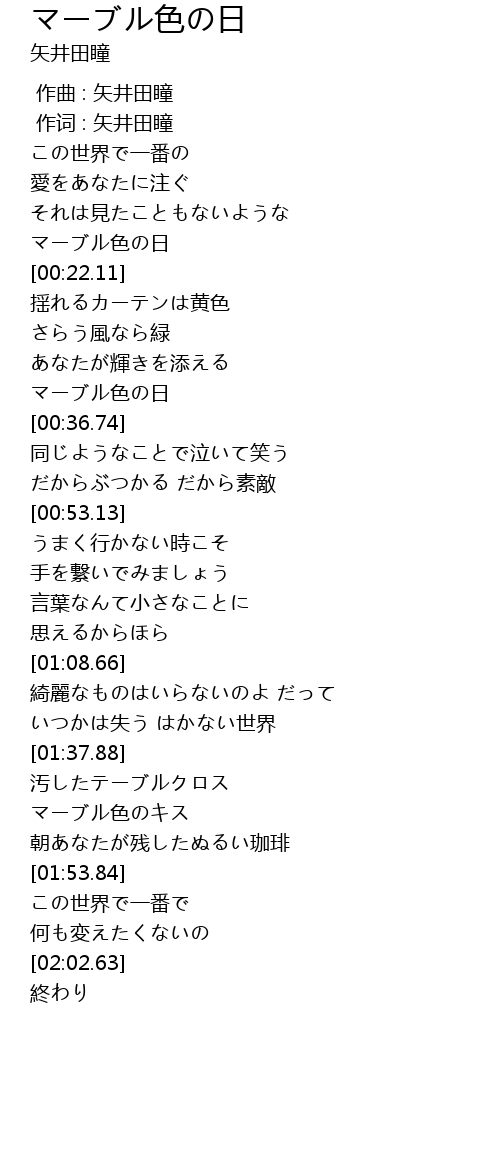 | [00:00.00] | 作曲 : 矢井田瞳 |