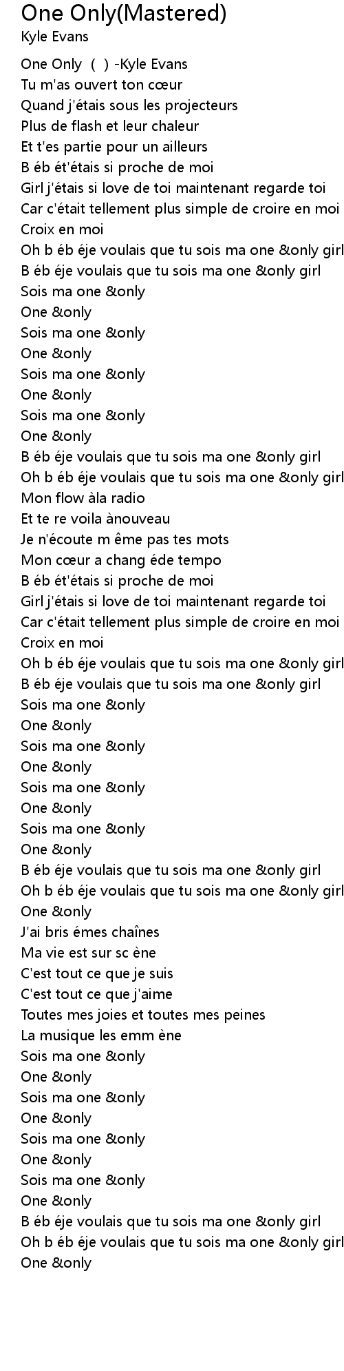 | [00:47.838] | Oh b é b é je voulais que tu sois ma one only girl |