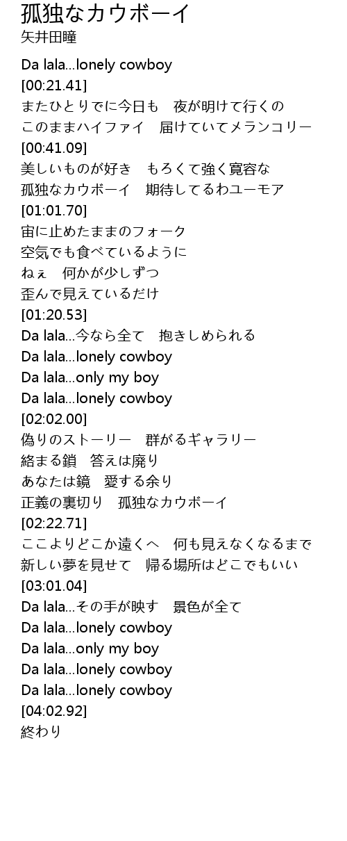 | [03:32.36] | Da lala... lonely cowboy |