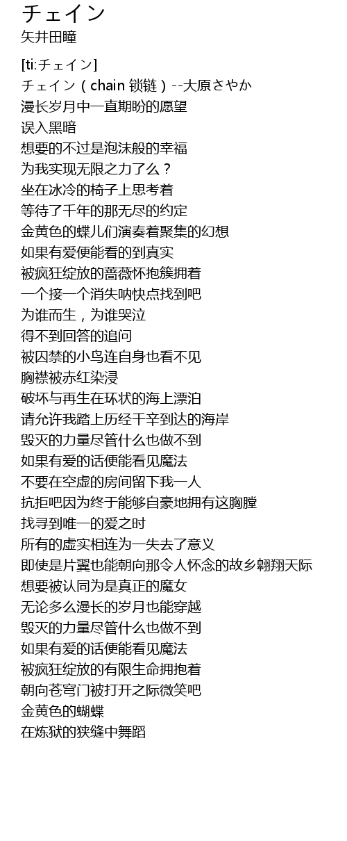 | [00:01.308] | チェイン(chain 锁链)--大原さやか |