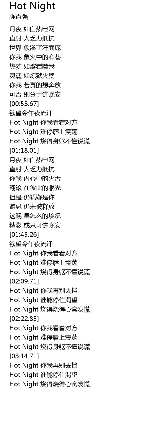 | [03:19.36] | Hot Night 谁能停住渴望 |