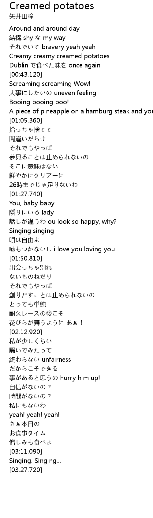 | [00:35.100] | Creamy creamy creamed potatoes |