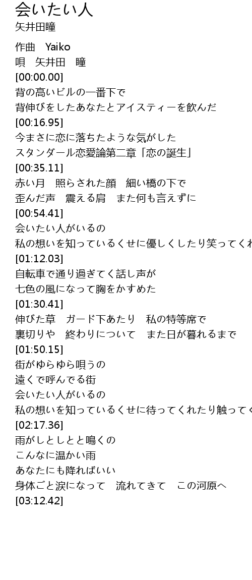 | [02:57.65] | 身体ごと涙になって 流れてきて この河原へ |