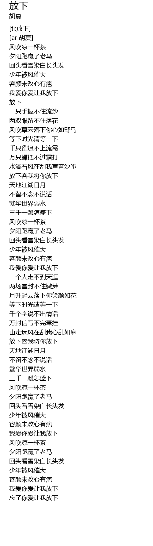 | [03:11.715] | fang xia rong wo jiang ni fang xia |