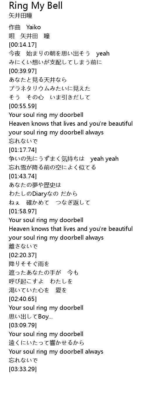 | [03:00.31] | Your soul ring my doorbell |