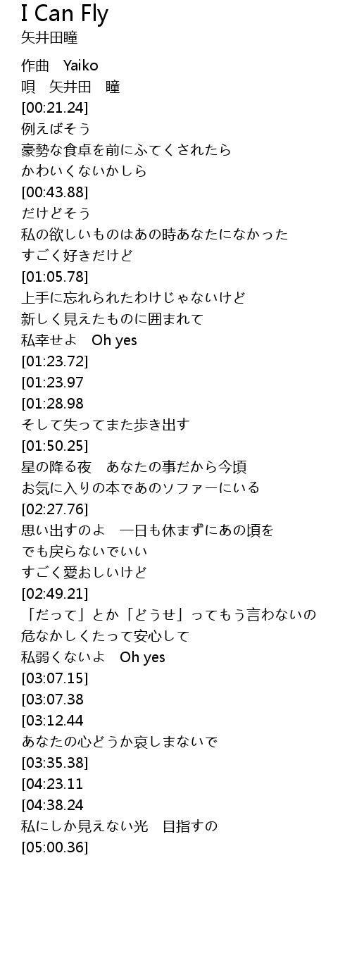| [03:22.40][03:12.44] | i can fly without you |
