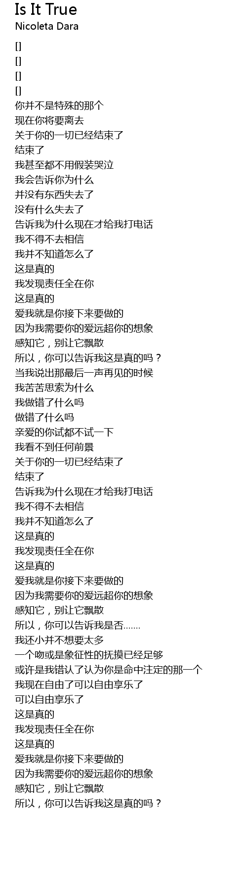 | 歌曲 | Is It True |