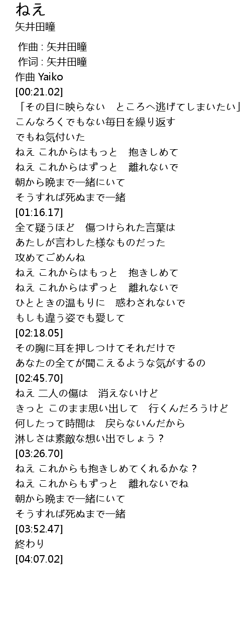 | [00:00.00] | 作曲 : 矢井田瞳 |