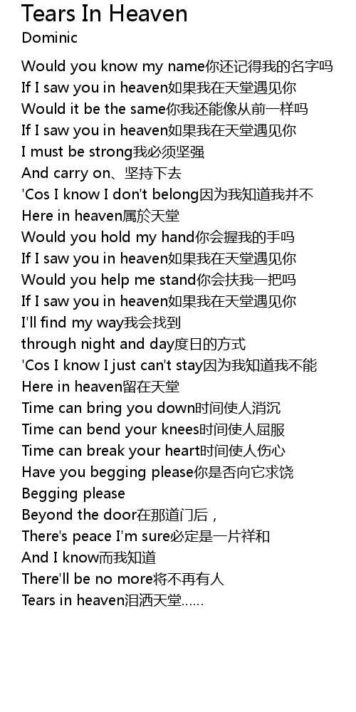 | Tears in heaven lèi sǎ tiān táng |