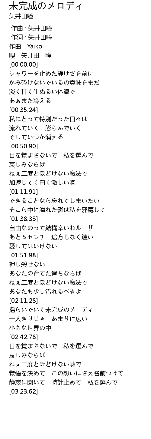 | [02:29.13] | 揺らいでいく未完成のメロディ |
