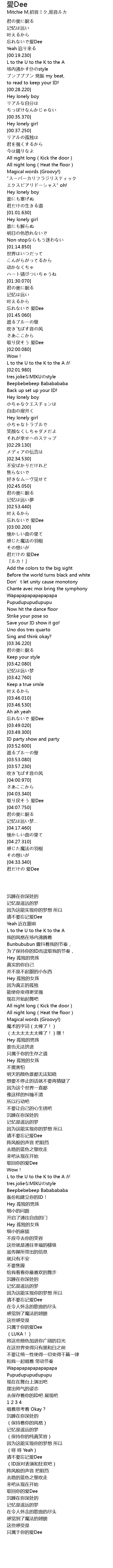 | [04:03.560] | qǔ tì ài Dee |