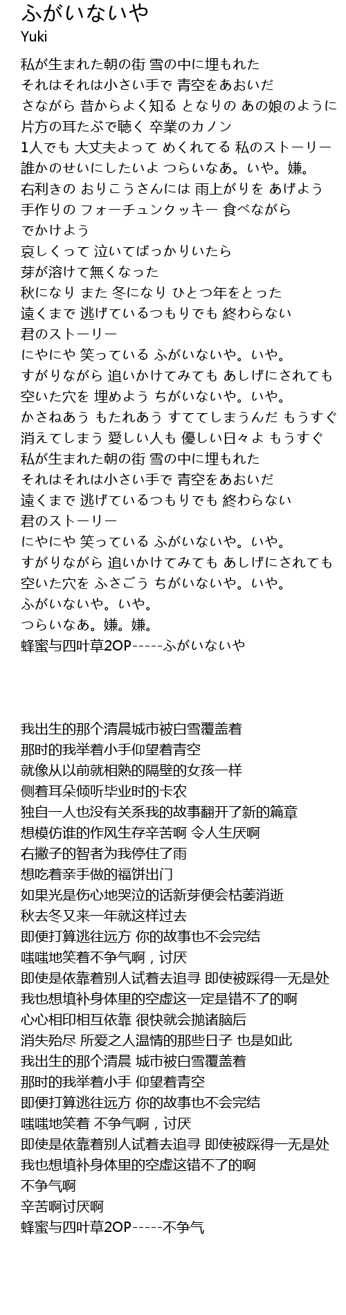 | [03:43.50] | 蜂蜜与四叶草2OP-----ふがいないや |