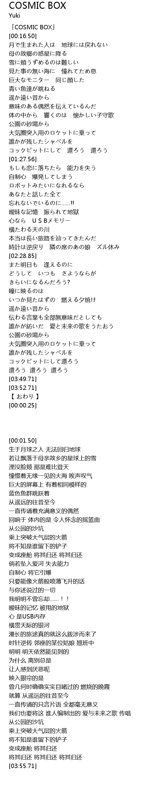 | [00:01.50] | 「COSMIC BOX」 |