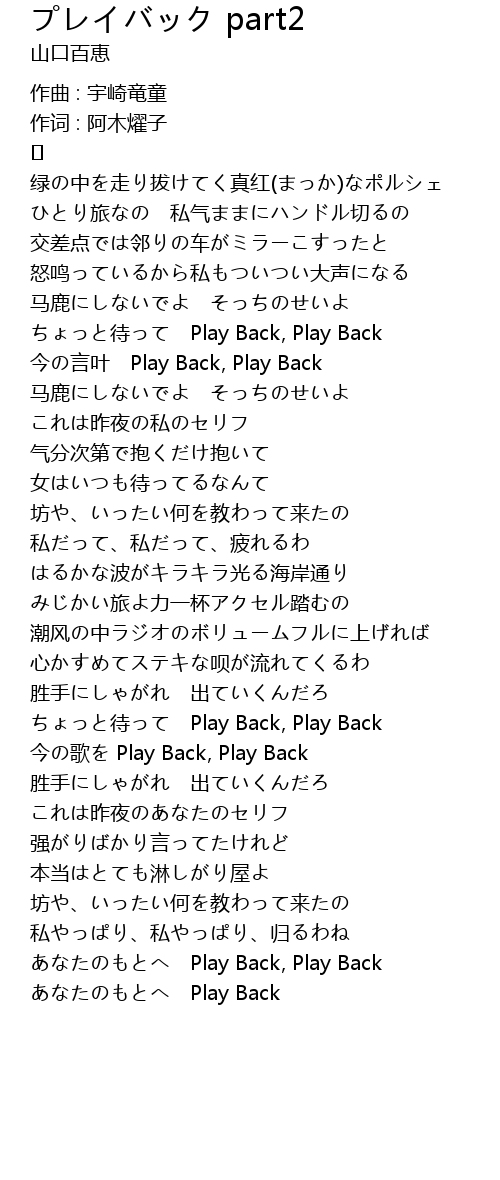 | 歌曲 | プレイバック part2 |