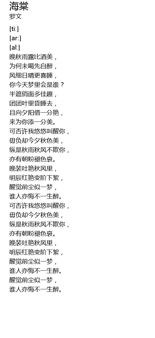 | [03:26.51] | 谁人亦悔不一生醉。 |