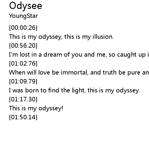 | [00:49.42] | This is my odyssey, this is my illusion. |
