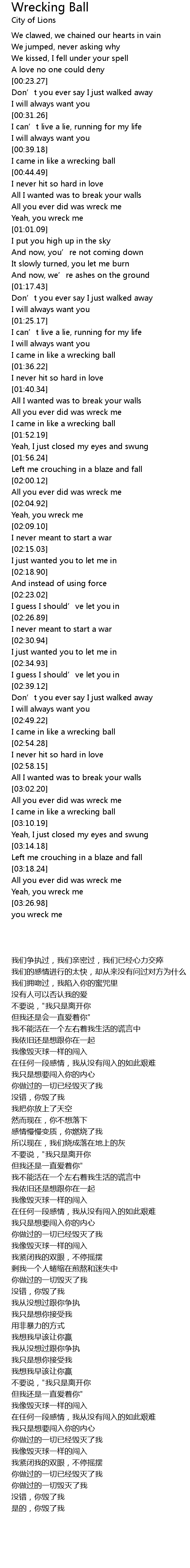 | [01:33.41] | I came in like a wrecking ball |