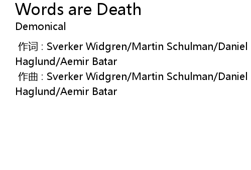 | [00:00.000] | 作曲 : Sverker Widgren/Martin Schulman/Daniel Gustavsson/Johan Haglund/Aemir Batar |