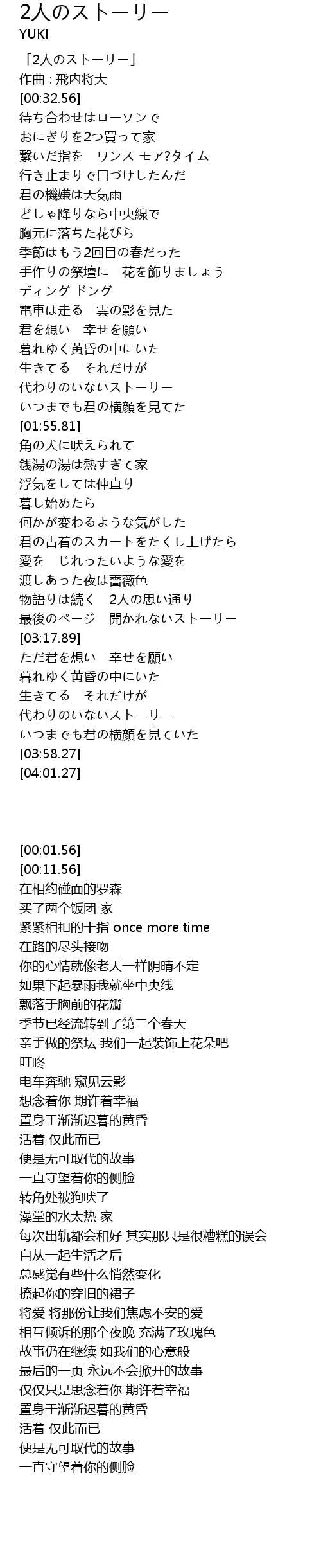 | [03:01.25] | 物語りは続く 2人の思い通り |
