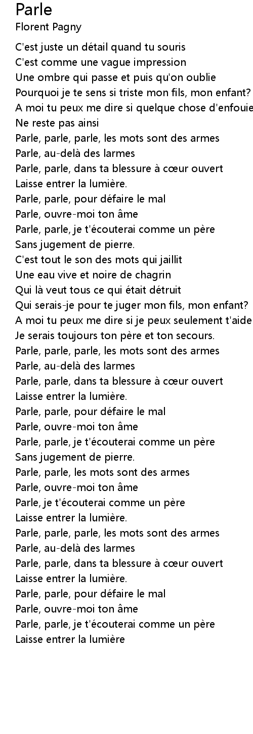 | Parle, parle, je t'é couterai comme un pè re | |
