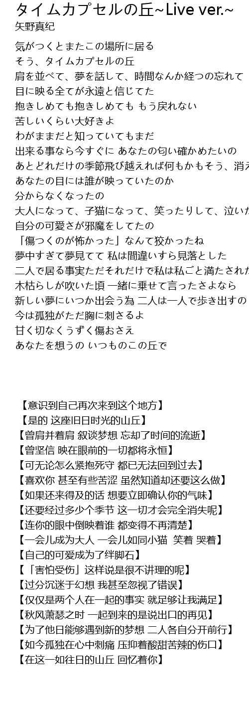 | [00:23.72] | そう、タイムカプセルの丘 |