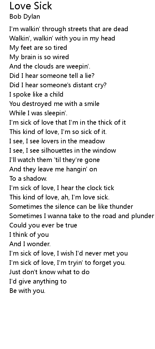 I'm sick of love that I'm in the thick of it |