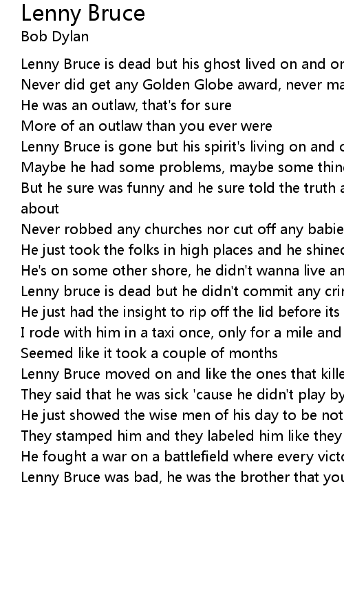 Lenny bruce is dead but he didn't commit any crime |