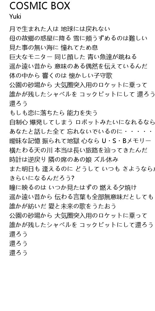 | 歌曲 | COSMIC BOX |