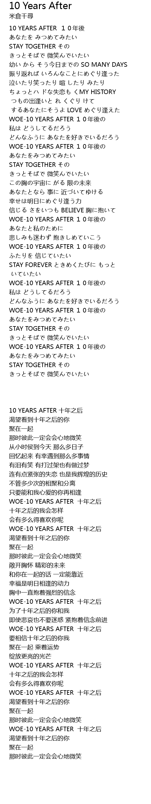 | [00:07.780] | 10 YEARS AFTER nián hòu |