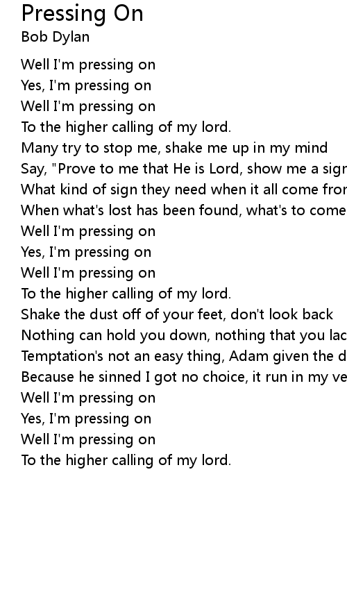 Well I'm pressing on |