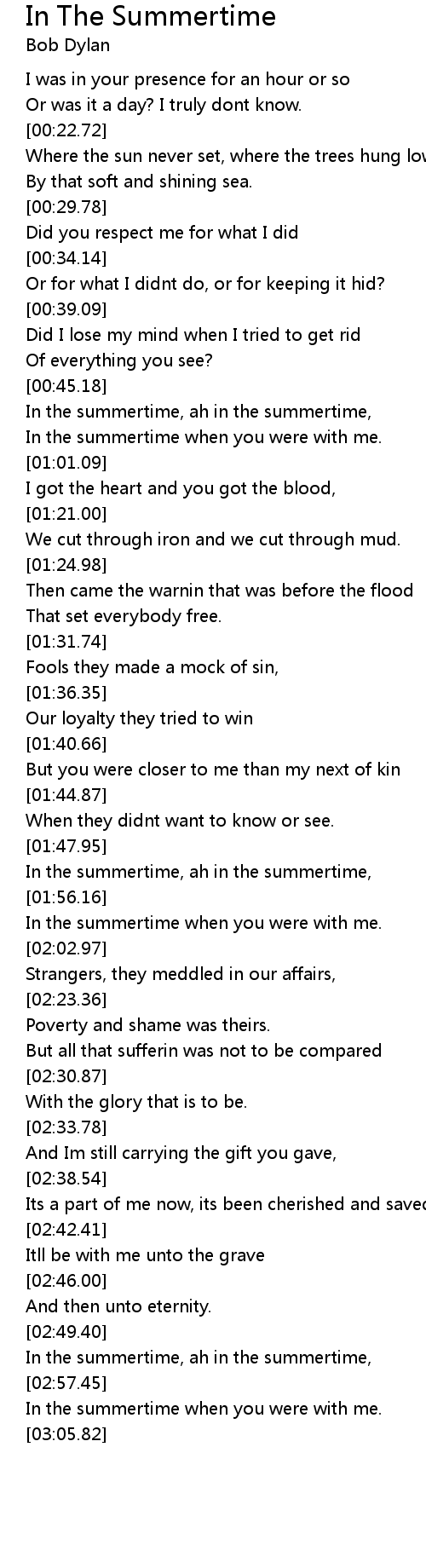 In the summertime, ah in the summertime, |