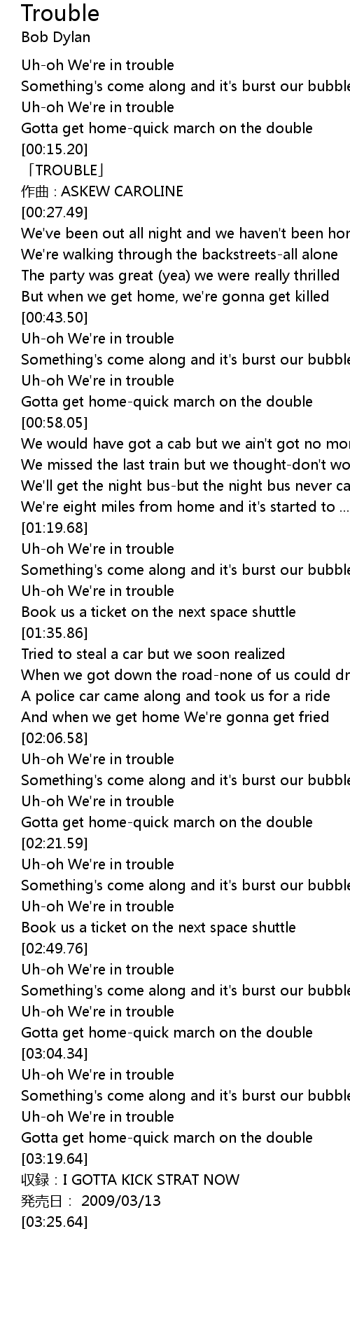 | [03:21.64] | 収録:I GOTTA KICK STRAT NOW |