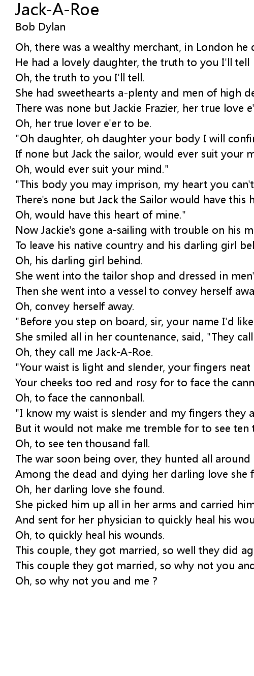 She smiled all in her countenance, said, "They call me Jack-A-Roe" |