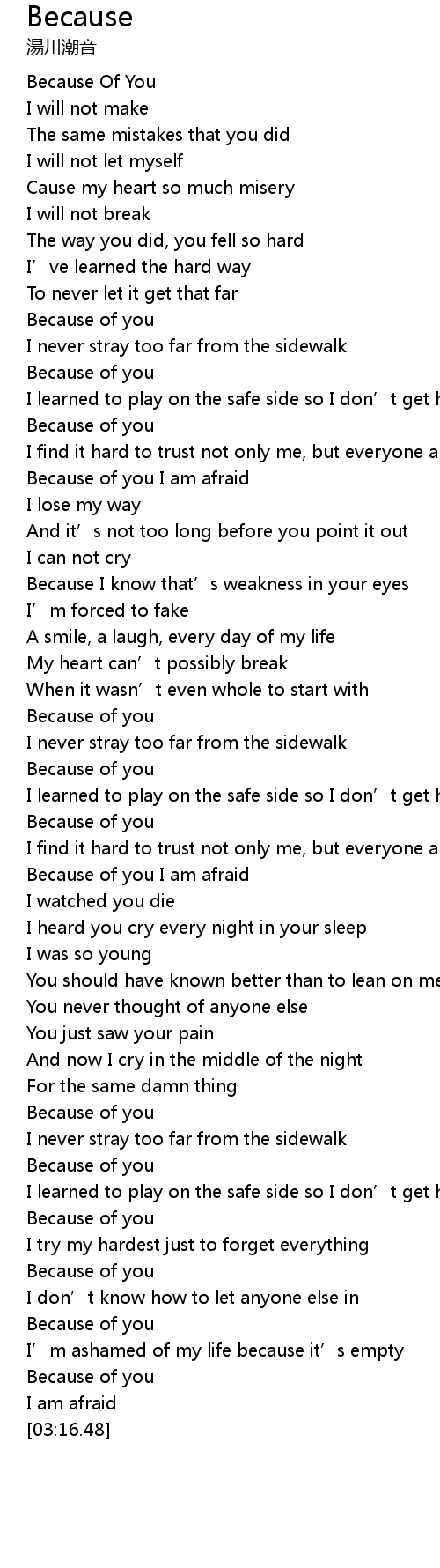 | [00:00.00] | Because Of You |