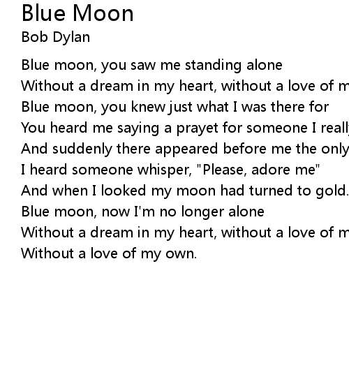 | Blue moon, you saw me standing alone | |