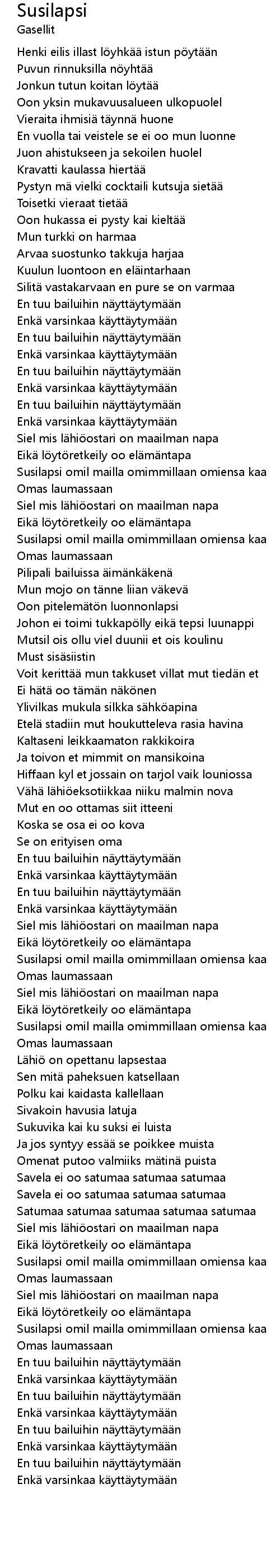 | [03:00.94] | Satumaa satumaa satumaa satumaa satumaa |