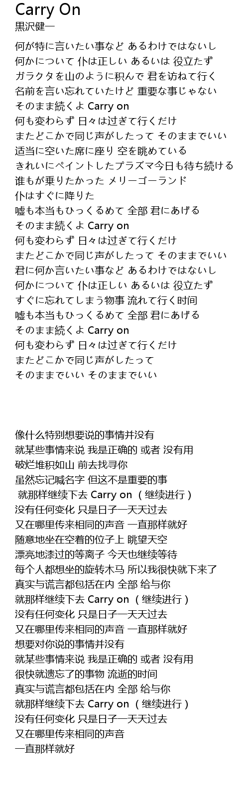 | [00:43.62] | 就那样继续下去 Carry on (继续进行) |
