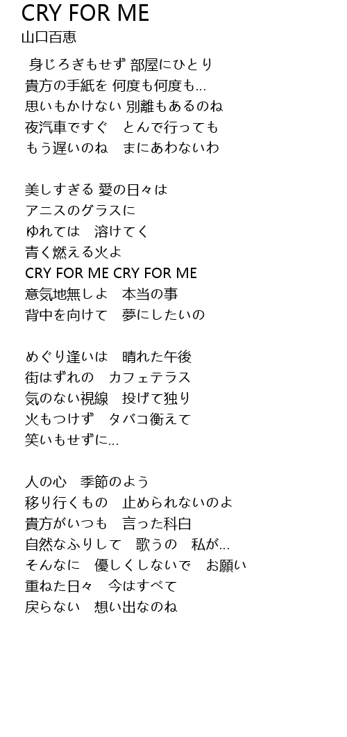 | CRY FOR ME CRY FOR ME | |