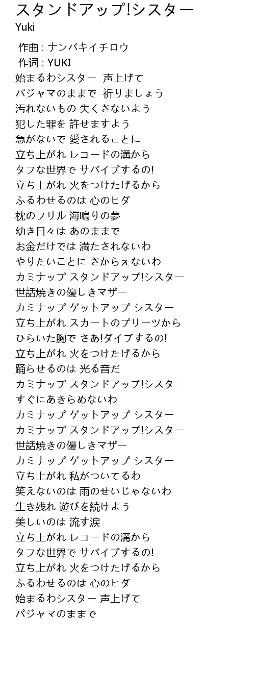 | [02:16.08] | カミナップ スタンドアップ!シスター |