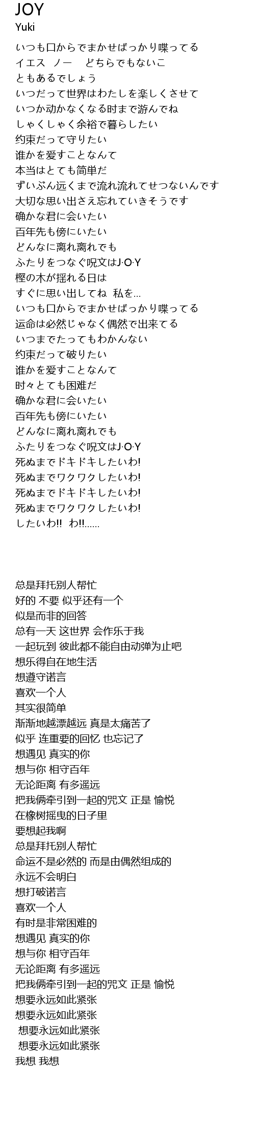 | [01:55.33] | ふたりをつなぐ呪文はJ·O·Y |
